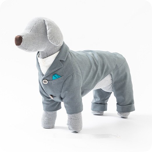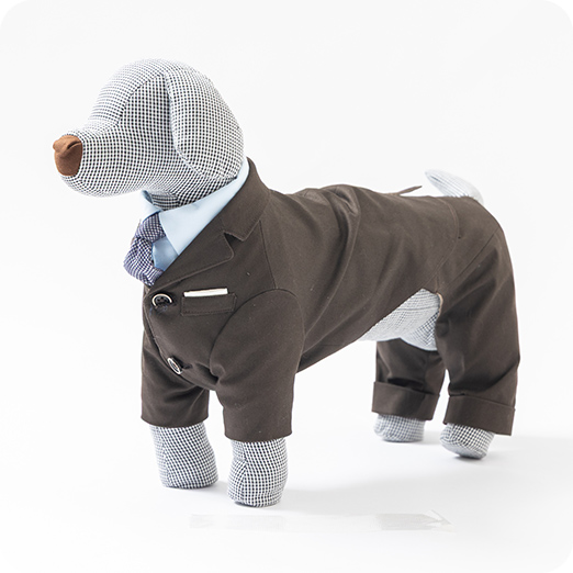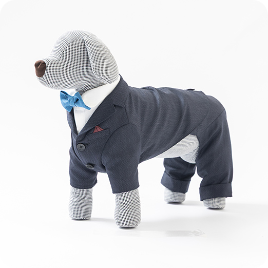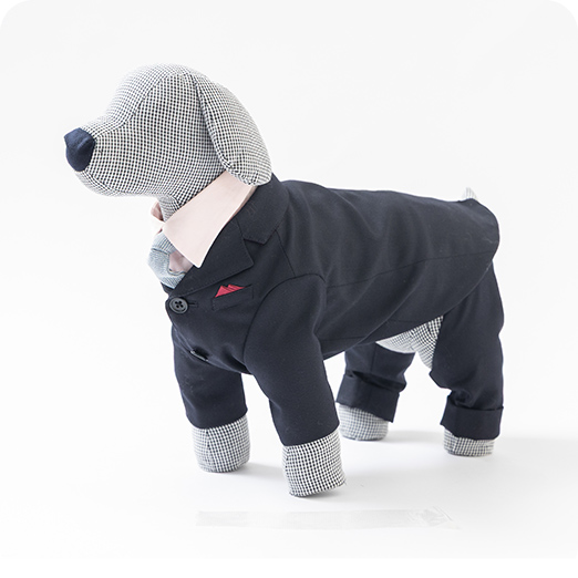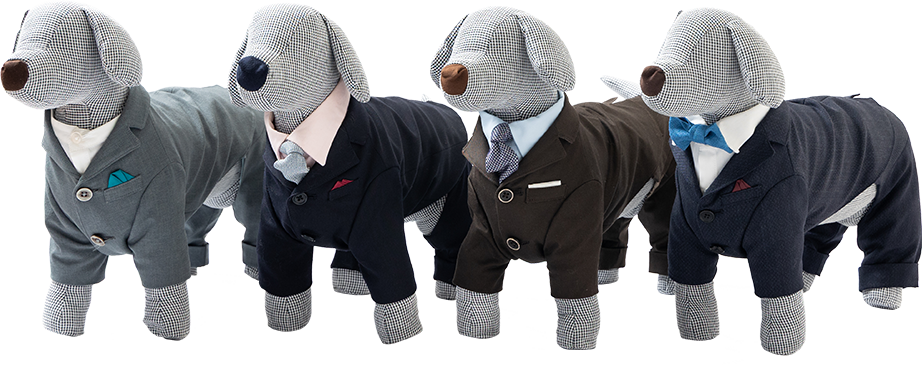 ドゥ-ジェントルの愛犬用オーダースーツの基本スタイルは、ジャケット・パンツ・シャツ・ネクタイのセットです。