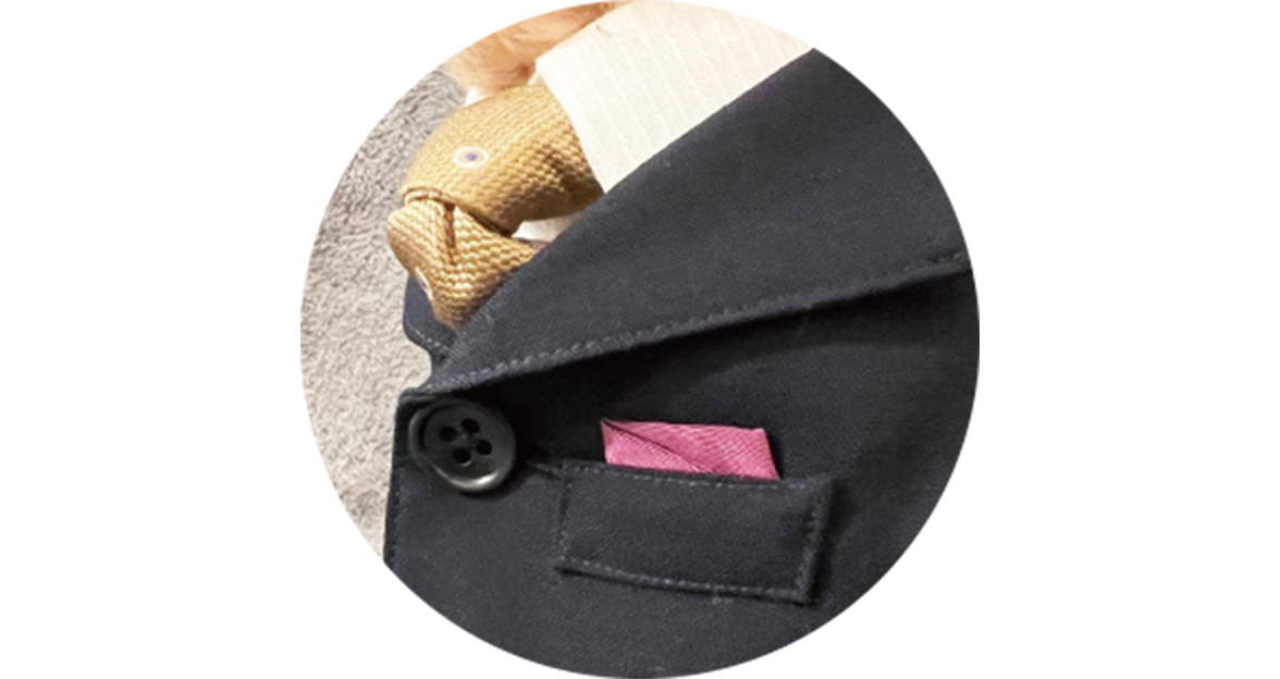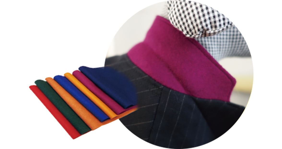 ジャケットの上衿裏側にカラークロスを使用(色の選択もできます)